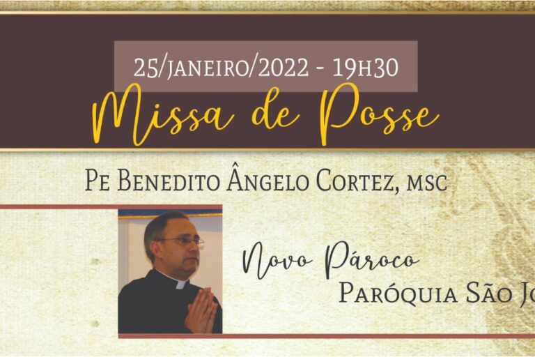 Convidamos você a participar conosco da Missa de posse do novo Pároco, Pe. Benedito Ângelo Cortez, MSC, a ser realizada na Matriz de São José, no dia 25/janeiro às 19h30 – Rua 24 de Maio, 477 – Vila Industrial – Campinas/SP Benedito Ângelo Cortez, nascido em 11 de janeiro de 1966, foi ordenado sacerdote…