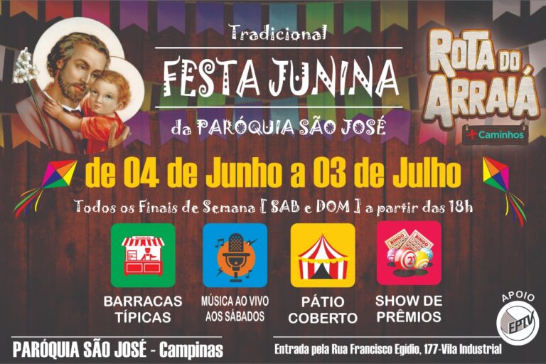 Nossa Festa Junina começa dia 31/05/2025. Venha participar! Teremos 5 finais de semana de festa!