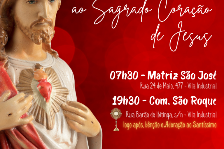 Missa em louvor ao Sagrado Coração de Jesus. Toda 1a sexta-feira do mês.