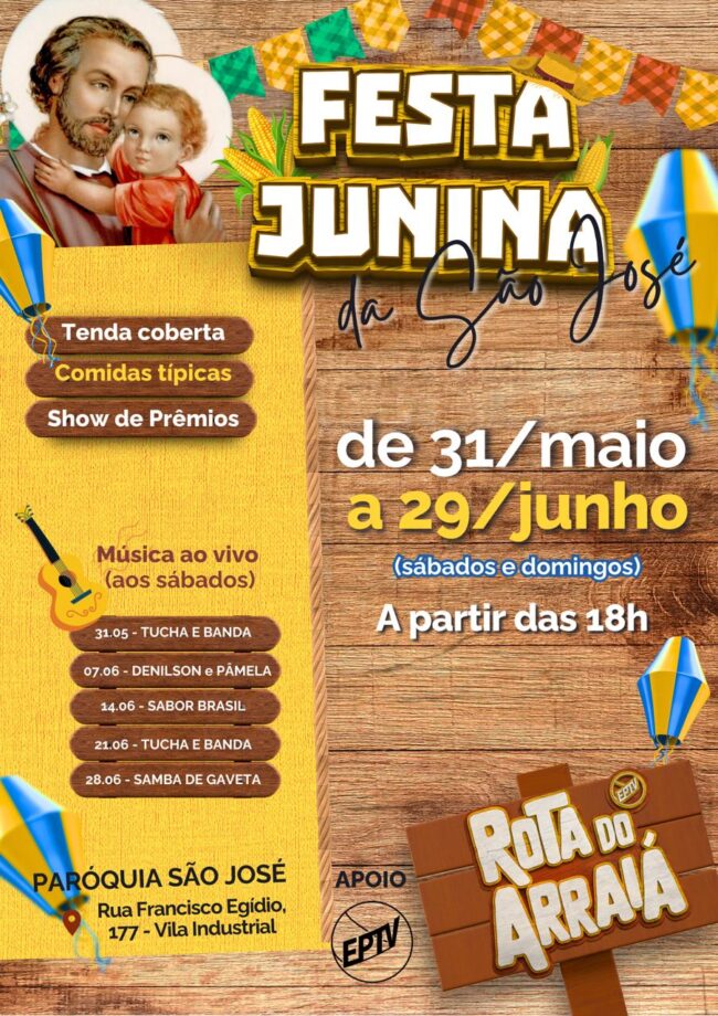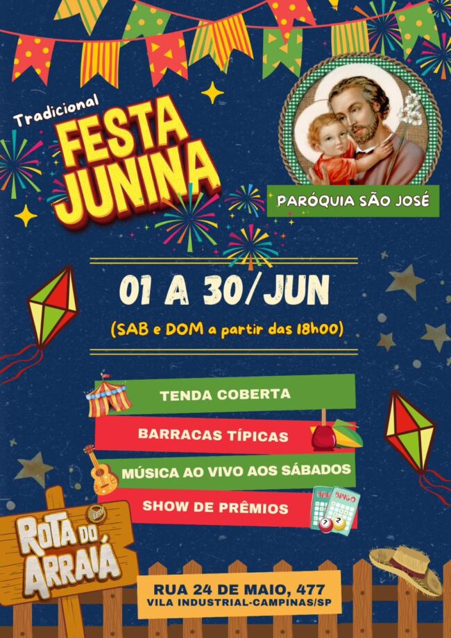 Nossa Festa Junina começa dia 31/05/2025. Venha participar! Teremos 5 finais de semana de festa!