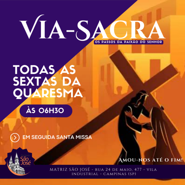 Participe conosco! Todas sextas-feiras da Quaresma, temos a Via Sacra às 06h30, e em seguida a Santa Missa.
