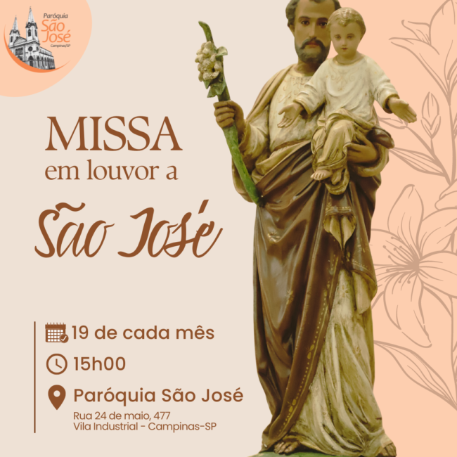 Todos os meses, no dia 19, temos a missa de São José às 15 horas.