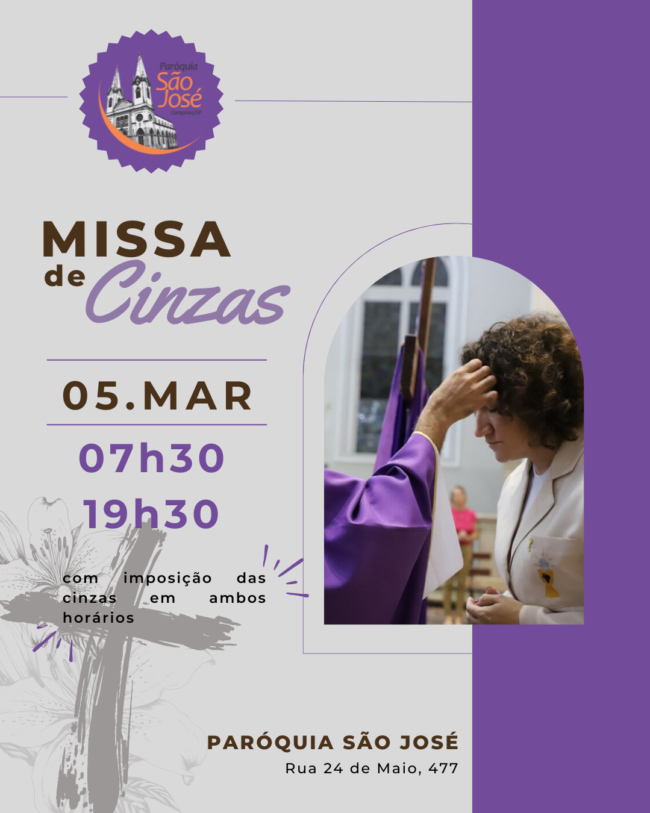 QUARTA-FEIRA DE CINZAS – 05/MARÇO/2025 “POR QUE CELEBRAR O RITO DA IMPOSIÇÃO DAS CINZAS? A cinza é um símbolo. Sua função está descrita em um importante documento da Igreja, mais precisamente no artigo 125 do Diretório sobre a piedade popular e a liturgia: “O começo dos quarenta dias de penitência, no Rito romano, caracteriza-se pelo…