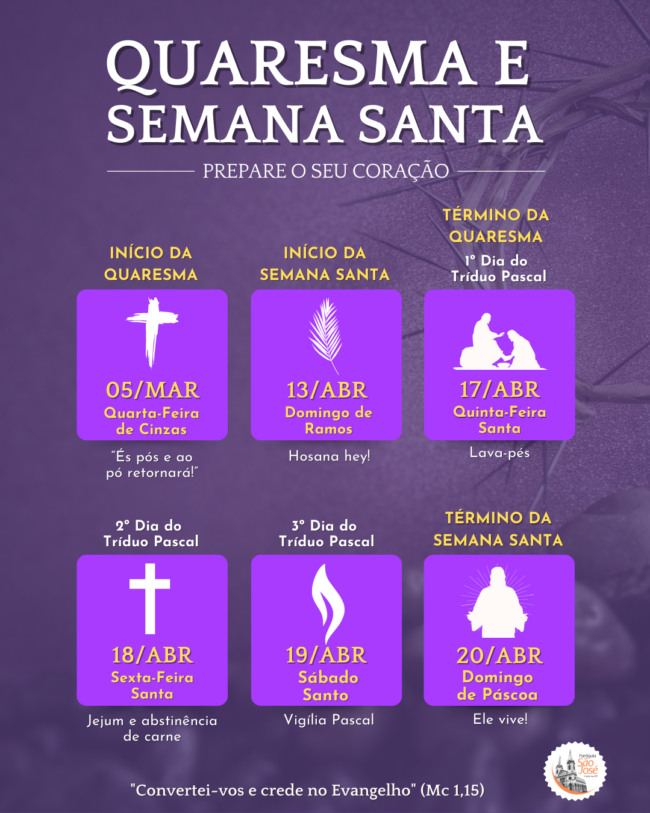 A Quaresma é tempo de reflexão e conversão. Por isso, preparemo-nos para a Páscoa do Senhor!