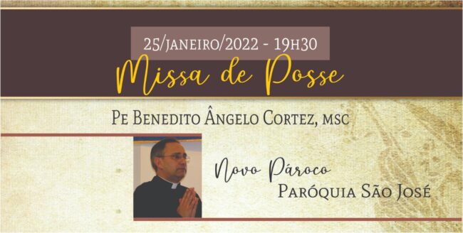 Convidamos você a participar conosco da Missa de posse do novo Pároco, Pe. Benedito Ângelo Cortez, MSC, a ser realizada na Matriz de São José, no dia 25/janeiro às 19h30 – Rua 24 de Maio, 477 – Vila Industrial – Campinas/SP Benedito Ângelo Cortez, nascido em 11 de janeiro de 1966, foi ordenado sacerdote…