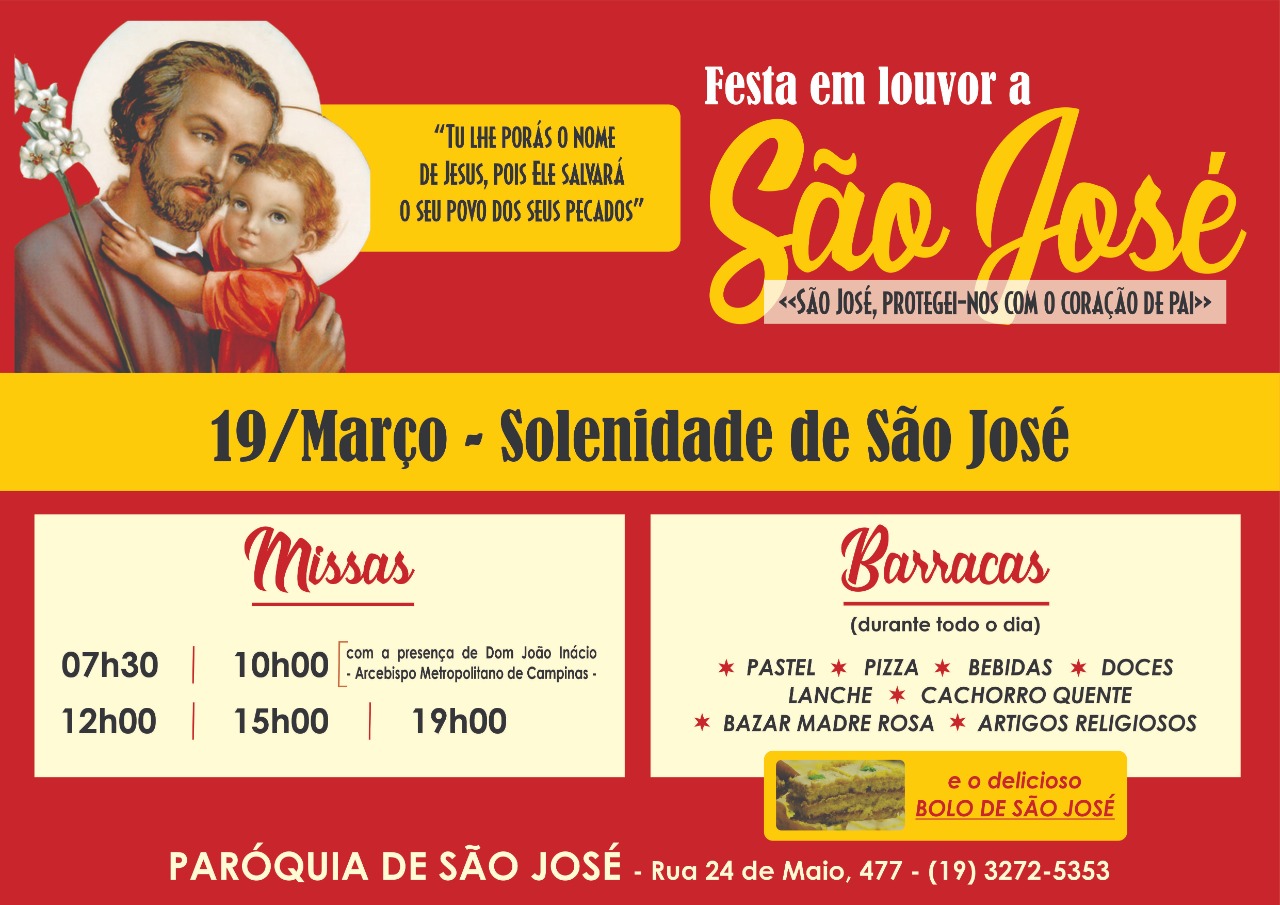 Categories: Religioso, SocialNavegação de post:AnteriorPost anterior:Fins de semana do PastelPróximoPróximo post:Semana Santa na Matriz São JoséRelated PostsProgramação do Final de Ano15 de dezembro de 2025Festa Junina 202515 de maio de 2025Festa de São José 20256 de março de 2025Quaresma 20254 de março de 2025Missa de Cinzas27 de fevereiro de 2025Resultado final da Ação entre amigos9 de dezembro de 2024